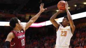 The preceding possession to Williams’s basket, South Carolina cut a Tennessee lead that had grown to as many as 14 points down to just one with 36.8 seconds left on a Frank Booker driving layup.