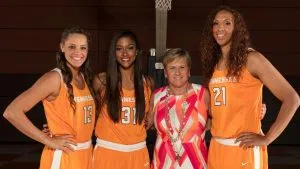 KNOXVILLE, Tenn. — Tennessee seniors Mercedes Russell, Jaime Nared and Kortney Dunbar met with members of the media before practice on Saturday in Thompson-Boling Arena. Tennessee is preparing to host No. 7/6 South Carolina on Sunday in what will be the final regular season home game for the seniors.