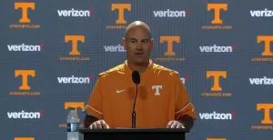 Vols head coach Jeremy Pruitt talked with the media at his fall practice opening press conference, Thursday, August 2. Vols HC Jeremy Pruitt / Credit: UT Athletics