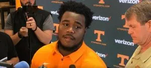 Tennessee offensive lineman Brandon Kennedy visited with the media in a group session on Thursday ahead of fall practice #6. Vols OL Brandon Kennedy / Credit: WNML Staff