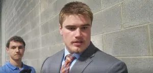 Tennessee offensive lineman Ryan Johnson spoke with the media in the postgame in a group setting after West Virginia defeated Tennessee 40-14 in Charlotte. Vols OL Ryan Johnson / Credit: WNML Staff