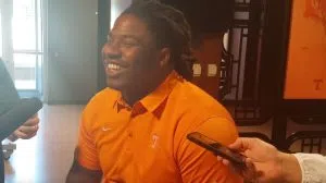 Tennessee defensive lineman Alexis Johnson spoke with the media in a group session on Tuesday ahead of the Charlotte game. Vols DL Alexis Johnson / Credit: WNML Staff