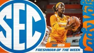 KNOXVILLE, Tenn. — University of Tennessee guard Zaay Green has been named the SEC Women’s Basketball Freshman of the Week, the league office announced on Tuesday.
