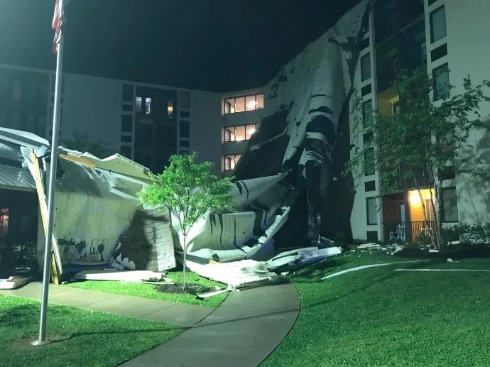 They found the rubber membrane and some metal flashing had blown off of two buildings. About 150 different units were affected.