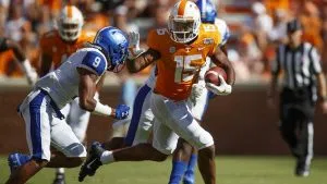 Jennings is one of the veteran players on the roster. He has seen it all in his time on Rocky Top, from missing 11 games with an injury in 2017 to catching a game-winning Hail Mary at Georgia in 2016 to leading the Vols to an upset at Auburn in 2018. He even has thrown two touchdown passes (in 2015 and 2016) and recorded an interception.
