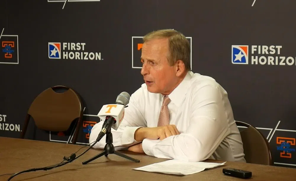 Tennessee coach Rick Barnes spoke to the media after Memphis’ win at Tennessee Saturday afternoon 51-47. Vols HC Rick Barnes / Credit: 99.1 The Sports Animal