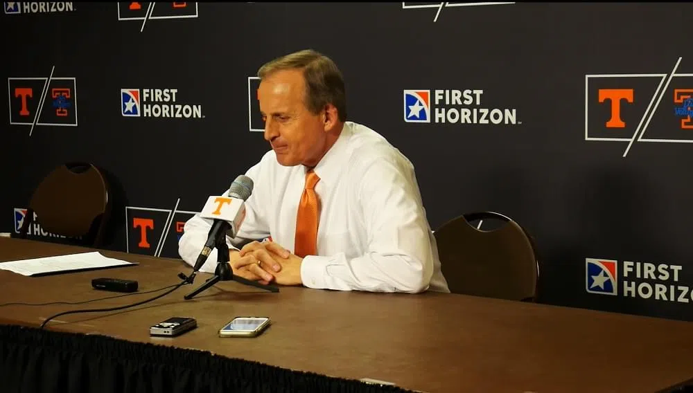 Tennessee head coach Rick Barnes spoke to the media after the Auburn Tigers won at the Volunteers 85-63 Saturday afternoon. UT HC Rick Barnes / Credit: 99.1 The Sports Animal