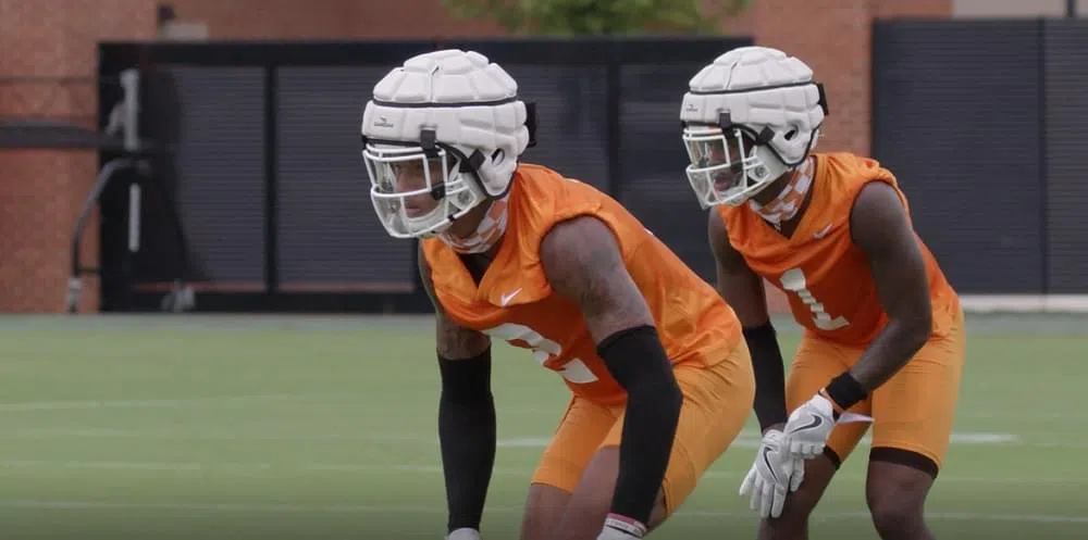 Here’s footage made available to us by VFL Films and UT Athletics from Fall Practice 2 on August 19, 2020. Vols DBs Alontae Taylor and Trevon Flowers / Credit: VFL Films and UT Athletics