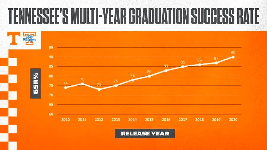 This year’s Tennessee-specific data revealed an overall multi-year GSR of 90 percent—the highest in UT history. It marked the eighth straight year of improvement in Tennessee’s multi-year score.