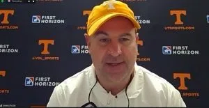 Tennessee head coach Jeremy Pruitt held his postgame press conference after UT’s loss at the Auburn Tigers 30-17. Vols HC Jeremy Pruitt / Credit: UT Athletics