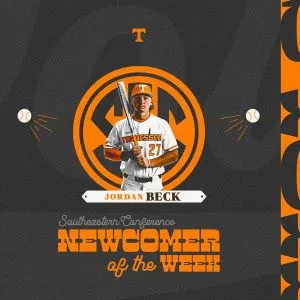 BIRMINGHAM, Ala. – Tennessee sophomore slugger Jordan Beck was named the SEC Co-Newcomer of the Week on Monday, as announced by the league office.