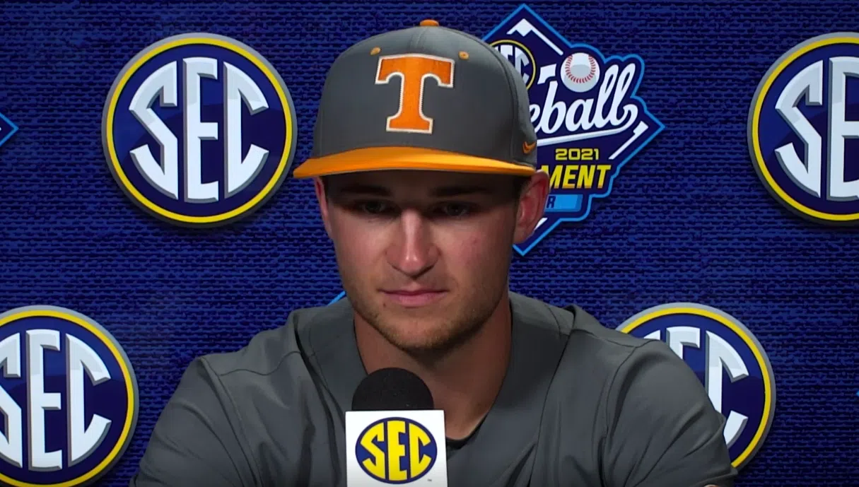 Tennessee Baseball head coach Tony Vitello, starting RHP Blade Tidwell, and OF Evan Russell spoke to the media in the postgame press conference after the 11-0 run rule win over Alabama in the SEC Tournament in Hoover Friday afternoon.