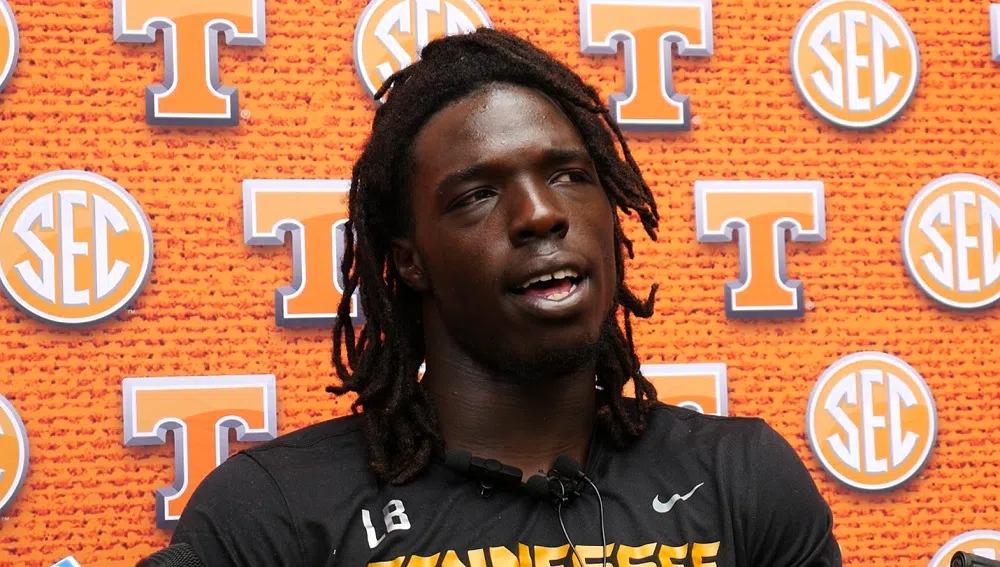 Tennessee football outside linebacker/defensive end Roman Harrison spoke with the media in Knoxville after fall practice #13. Vols OLB/DE Roman Harrison / Credit: 99.1 The Sports Animal
