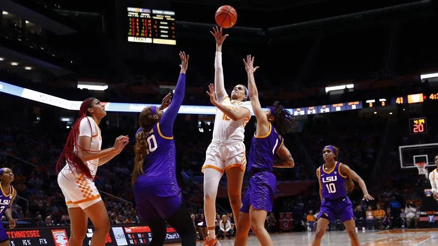 The Tigers opened the fourth with six straight points to lead by 14 before Dye hit a layup with 7:11 left in the game. LSU built its lead back up to 15, but Tennessee then switched to a full court press, creating turnovers and turning them into eight unanswered points that moved the score to 56-49 with just over three minutes to play. Walker hit a free throw at the 1:37 mark, and Kaiya Wynn followed it up with a fast-break layup on the next play to pull UT within four. Burrell continued the run with a layup with 33 seconds left in the game, and UT’s defense forced an LSU turnover to regain possession, but a bid to tie it up by Key missed just wide. Pointer hit a free throw with three seconds on the clock, and UT was unable to get a final shot off, falling 57-54.