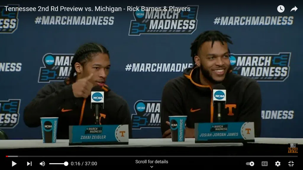 Tennessee players Zakai Zeigler and Josiah-Jordan James along with head coach Rick Barnes previewing 2nd Rd NCAA Tournament game vs. Michigan. Video courtesy of NCAA Media Hub.