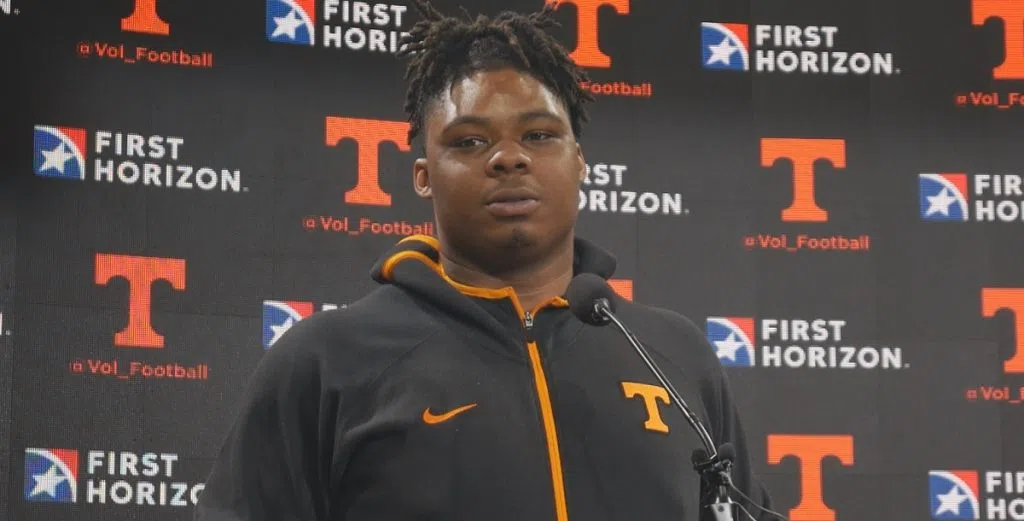 Tennessee offensive lineman Javontez Spraggins met with the media after Spring Practice #5 to discuss practice so far. Vols OL Javontez Spraggins / Credit: 99.1 The Sports Animal