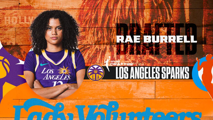 NEW YORK CITY — Rae Burrell became the 44th Tennessee women’s basketball player, including the second of the three-year Kellie Harper era, to be taken in the WNBA Draft, with the 6-foot-1 guard/forward going to the Los Angeles Sparks with the No. 9 pick of the first round.