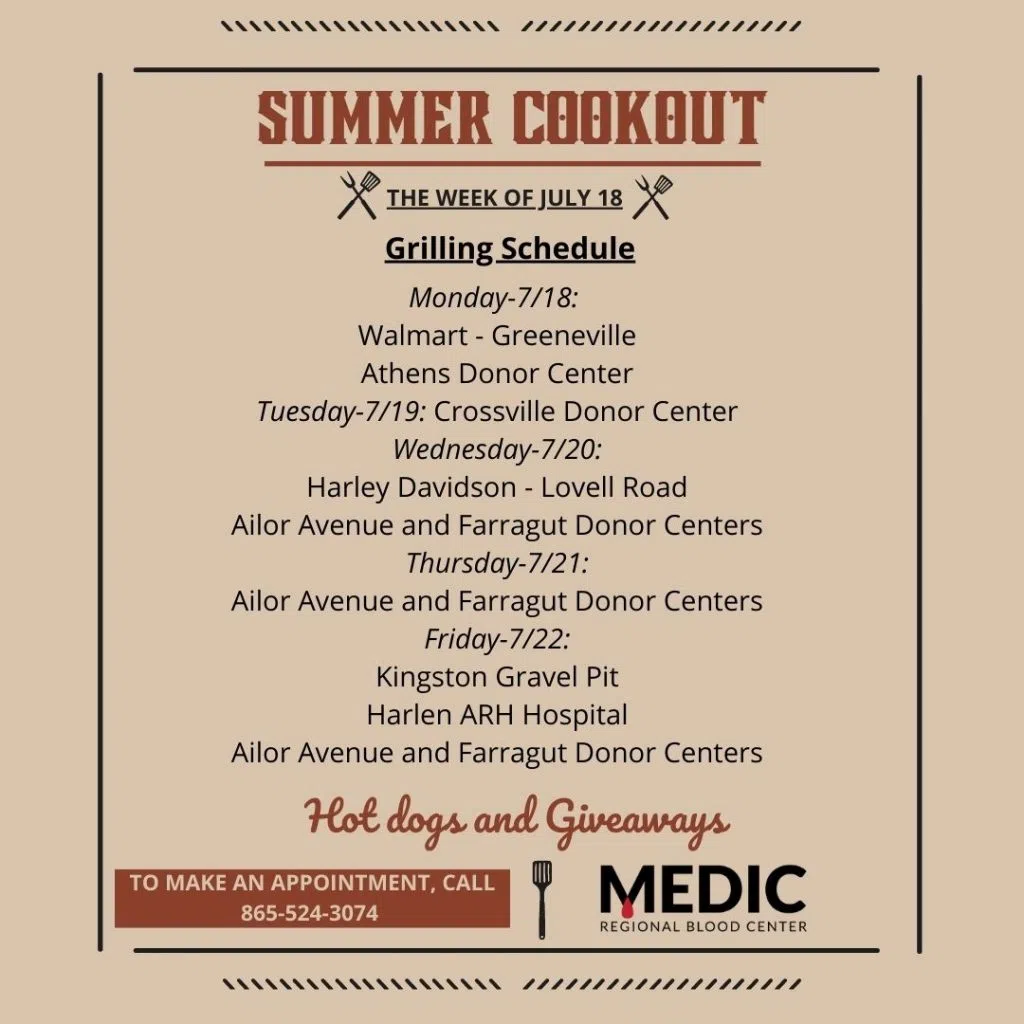 Medic Regional Blood Center’s Annual Summer Cookout is Coming up This Month