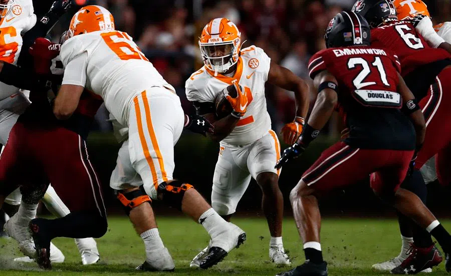 It was an offensive battle from the jump as the two sides combined for 59 points in the first half. South Carolina (7-4, 4-4 SEC) put up 21 points in the first quarter and followed it with a pair of scores in the second. Tennessee (9-2, 5-5) kept the pressure on with offensive success of its own, tossing up a 17-point second period and going into the half down just 11.