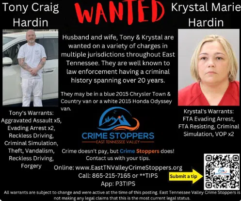 Tony and Krystal Hardin are a married couple well known to law enforcement, having a criminal history that spans over twenty years.