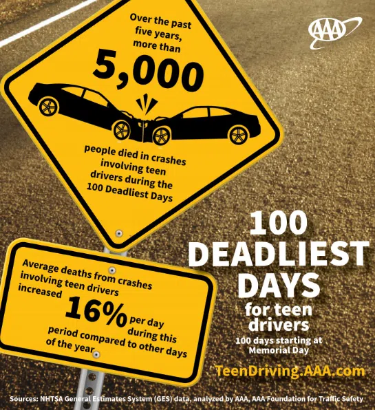 Officials say we’re officially in what’s known as the 100 deadliest days of the year. Triple A says from Memorial Day through Labor Day more teens are involved in deadly crashes.