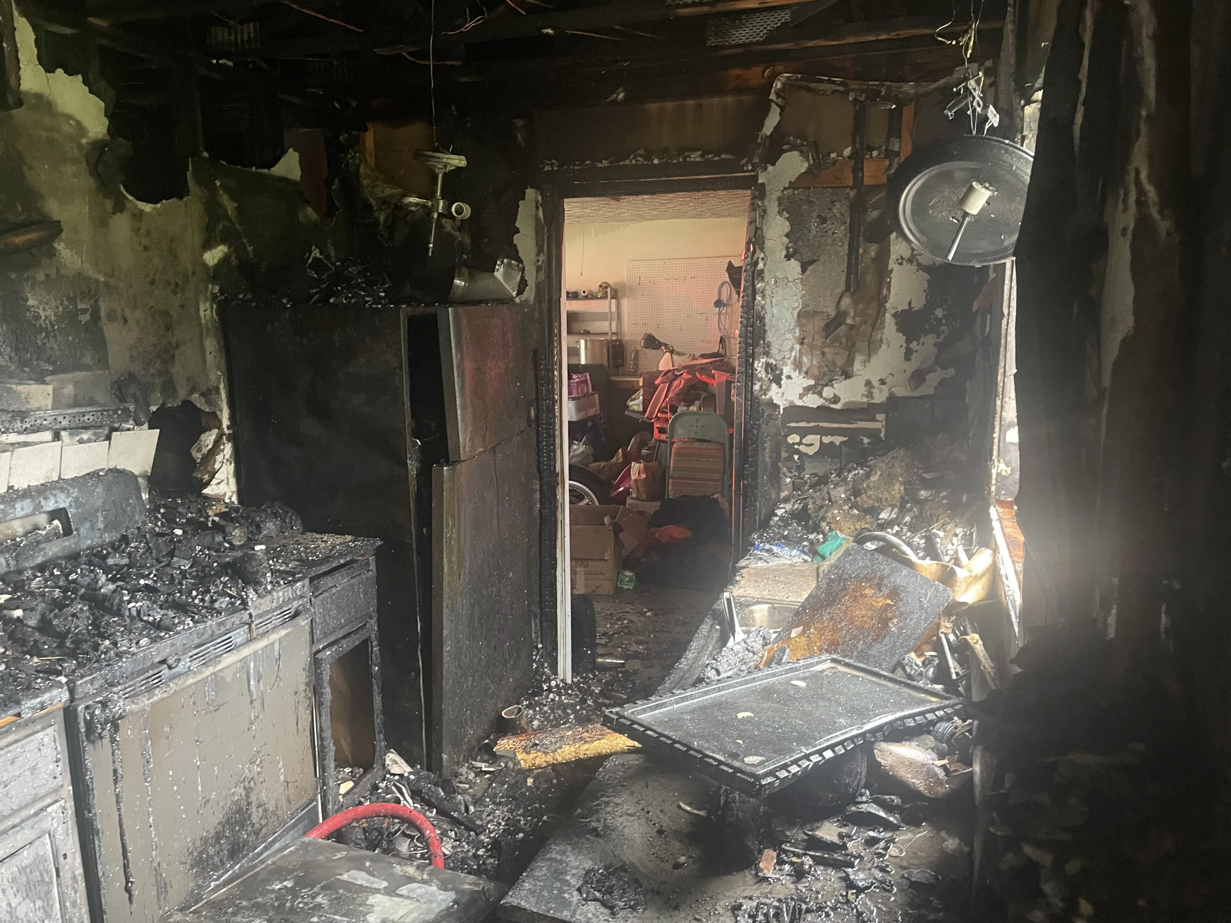 The home has suffered heavy fire, smoke, and water damage.