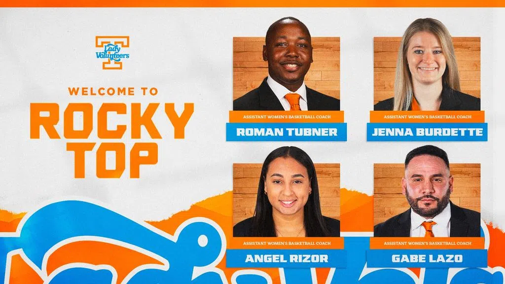 Joining the Lady Vol program as assistant coaches are Roman Tubner, former associate head coach/recruiting coordinator at Alabama; Gabe Lazo (pronounced Lazzo), former associate head coach/defensive coordinator at Mississippi State; Jenna Burdette, former associate head coach at Marshall; and Angel Rizor (pronounced Riser), former assistant coach at Marshall.