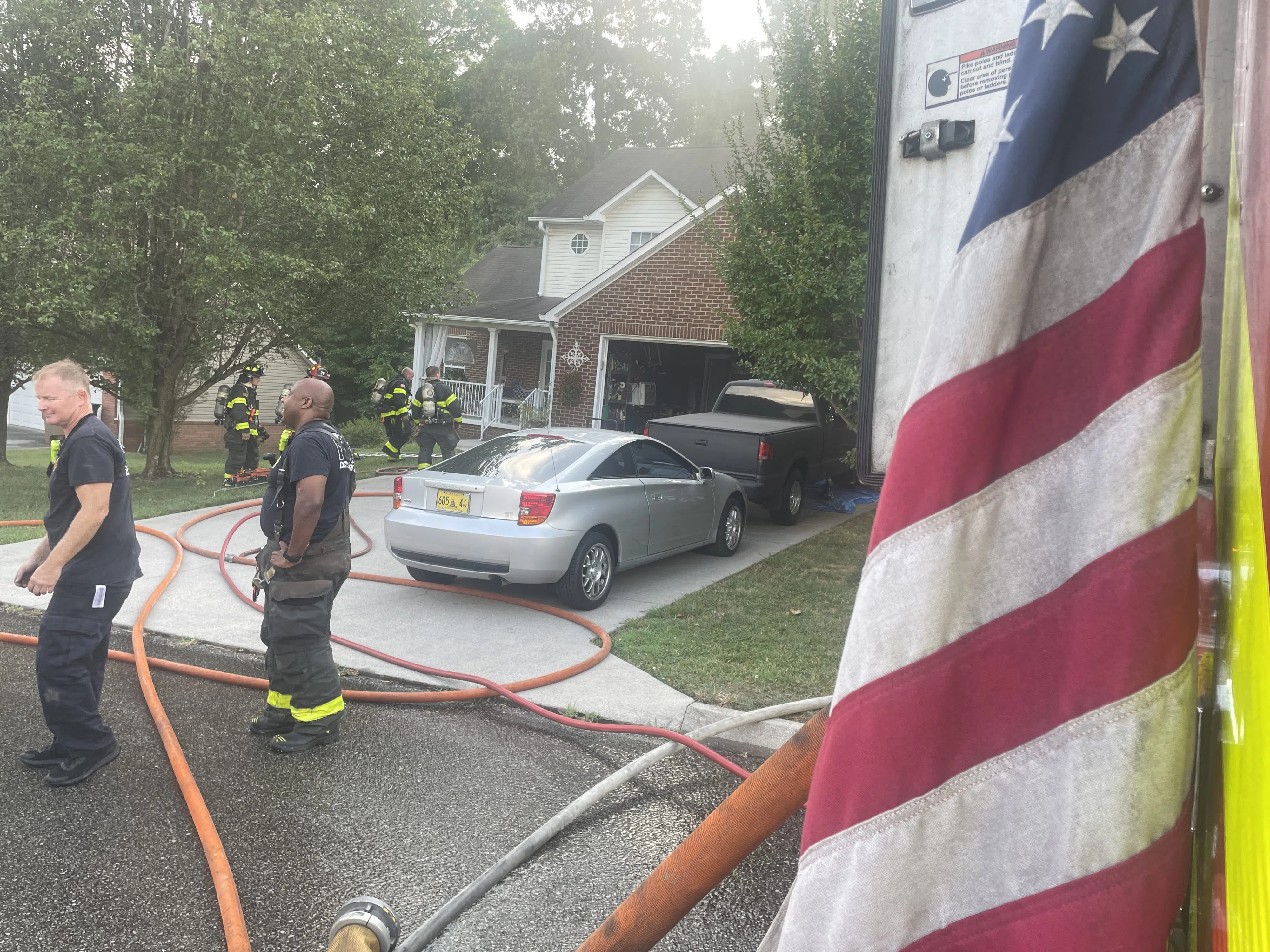 Everyone was out of the home when crews arrived and put out the fire. The occupants had been away from home and returned from an hour and a half-long trip and heard their smoke alarms and saw the smoke.