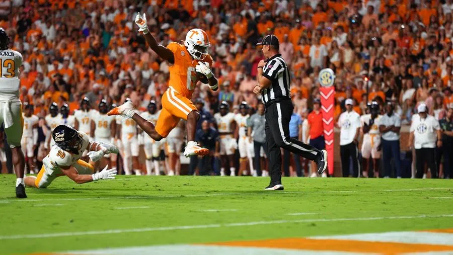 KNOXVILLE, Tenn. – Dylan Sampson ran for four first-half touchdowns, as No. 7/9 Tennessee exploded for 37 first-quarter points en route to a record-setting 71-0 shutout of Kent State in front of a sellout crowd of 101,915 on Saturday night at Neyland Stadium.