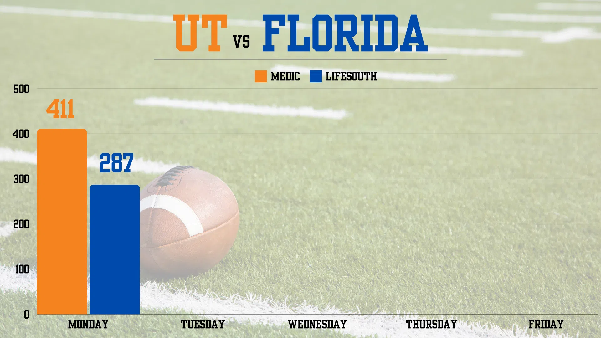 MEDIC Regional Blood Center’s annual competition against LifeSouth Blood Center out of Florida is underway and Medic is beating them 411 units to 287 in the first day.