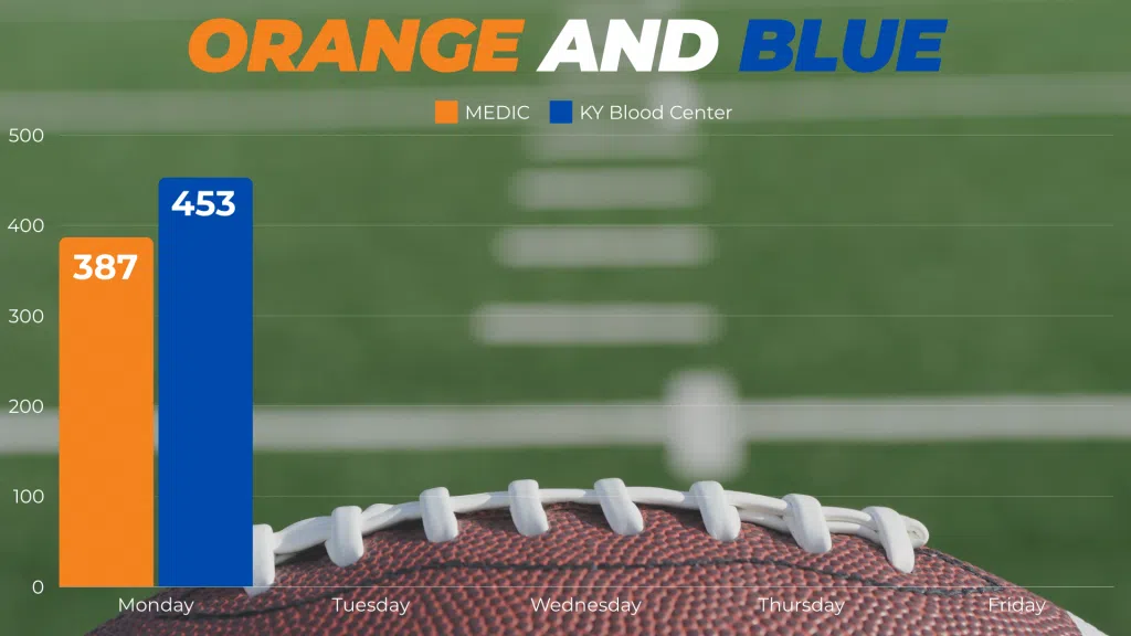 MEDIC Regional Blood Center is behind in the 37th Orange and Blue Blood Drive against Kentucky Blood Center.