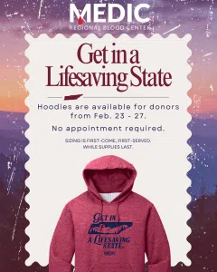 Get in a lifesaving state! Hoodie Week is back at MEDIC Regional Blood Center!