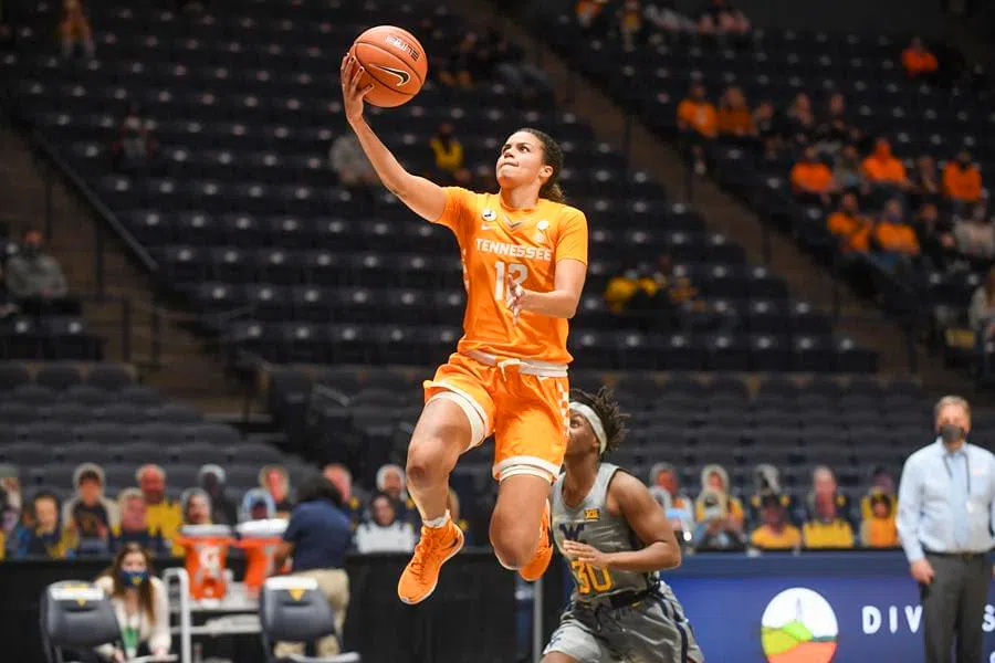 Rae Burrell – Lady Vols / Credit: UT Athletics MORGANTOWN, W. Va. - Junior Rae Burrell and sophomore Jordan Horston combined for 17 fourth-quarter points, but it wasn’t enough to give UT t...