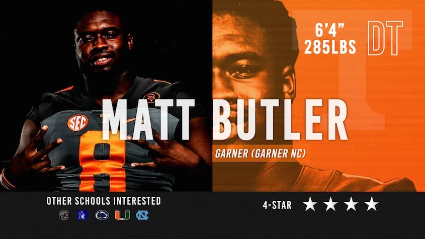 Matthew Butler DE Garner, NC 6’4″ 265 (3-star) Committed 12/20/16 Josh Ward’s Take: Tennessee spent a lot of time during the recruiting process pursuing Butler, who could develop int...