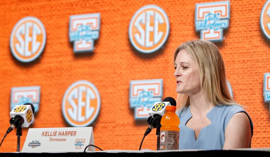 Tennessee women’s basketball head coach Kellie Harper took questions from the media on Wednesday afternoon ahead of the SEC Women’s Basketball Tournament being held at Bridg...
