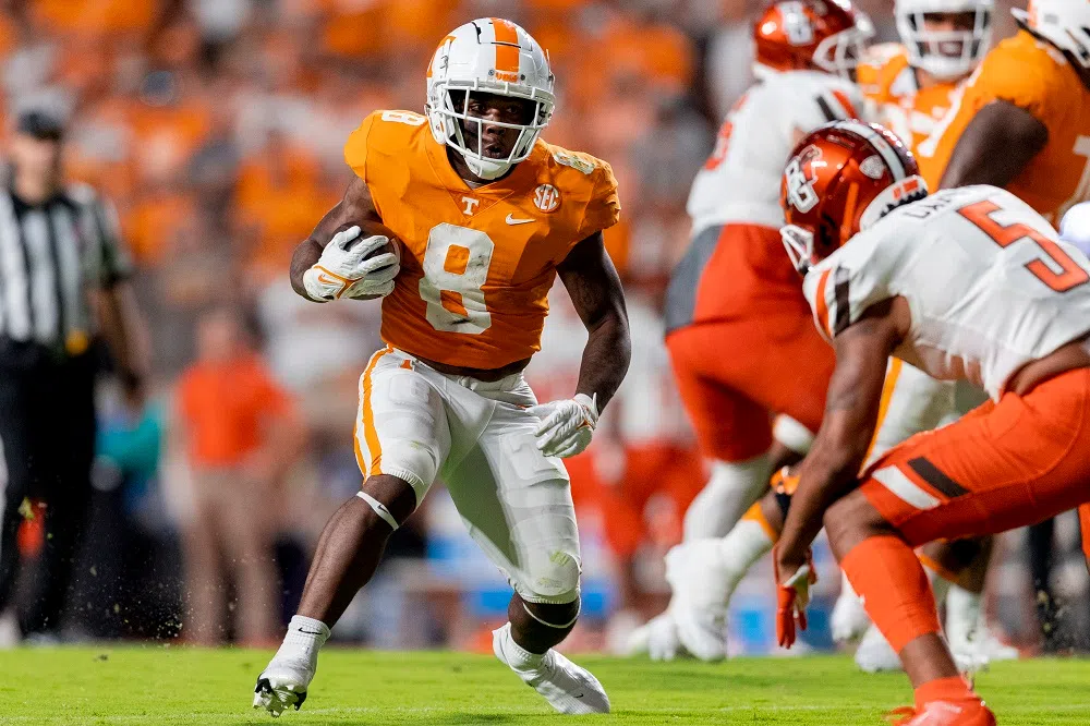Vols RB Tiyon Evans / Credit: UT AthleticsKNOXVILLE, Tenn. - Running backs Tiyon Evans and Jabari Small each turned in 100-yard nights, as Tennessee scored four touchdowns on the ground and rushed pas...