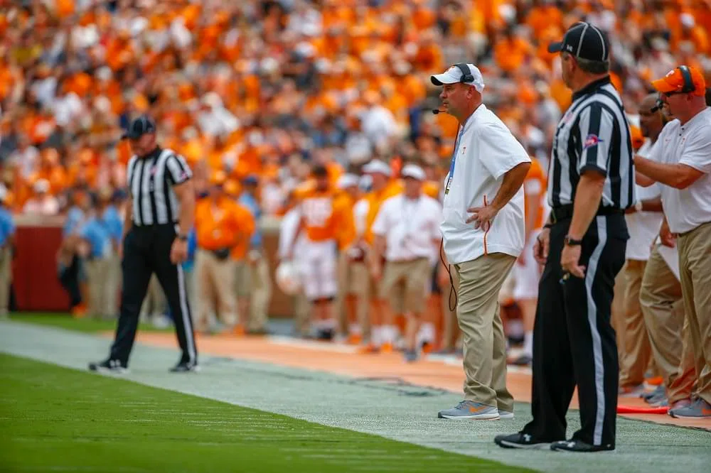 KNOXVILLE, TN – SEPTEMBER 08, 2018 – Head Coach Jeremy Pruitt of the Tennessee Volunteers during the game between the ETSU Buccaneers and the Tennessee Volunteers at Neyland Stadium in Kno...
