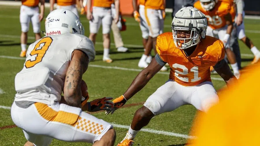 UT Football / Credit: UT Athletics KNOXVILLE, Tenn. - The Tennessee football team is one-third of the way through spring practice and head coach Jeremy Pruitt is encouraged by the progress the Vols ar...