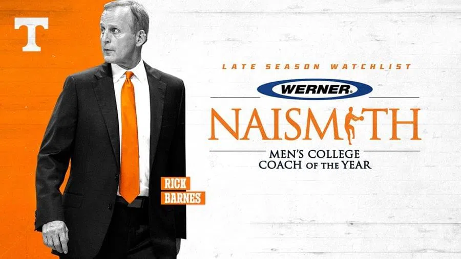 Credit: UT AthleticsATLANTA - Tennessee basketball coach Rick Barnes was named as one of 15 candidates for the Werner Ladder Naismith Trophy for Men’s College Coach of the Year by the Atlanta Ti...