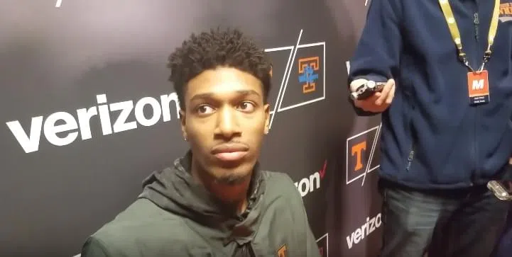 Tennessee guard Jordan Bowden spoke in the postgame after Tennessee’s 96-50 win over Georgia in Knoxville Saturday afternoon.UT G Jordan Bowden / Credit: WNML Staff