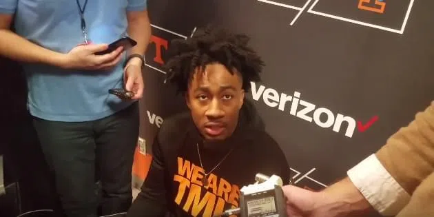 Tennessee guard Lamonte Turner spoke in the postgame after Tennessee’s 96-50 win over Georgia in Knoxville Saturday afternoon.UT G Lamonte Turner / Credit: WNML Staff