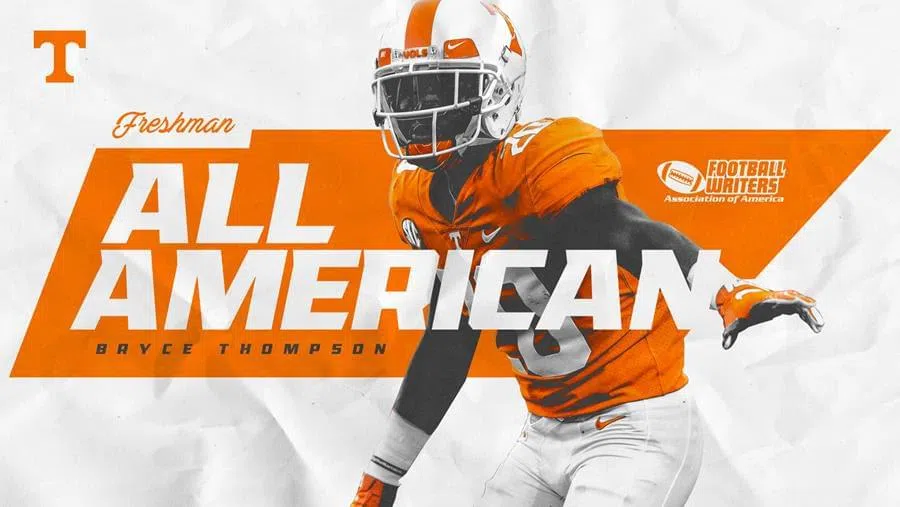 Vols CB Bryce Thompson / Credit: UT Athletics SAN JOSE, Calif. - Tennessee defensive back Bryce Thompson was named to the Football Writers Association of America Freshman All-America Team on Monday fo...
