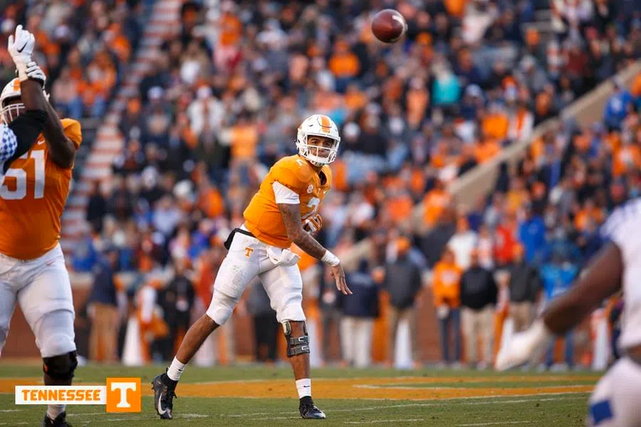 Vols QB Jarrett Guarantano / Credit: UT Athletics KNOXVILLE, Tenn. - Tennessee used a balanced offensive attack and stifling defense to take down #11/12/12 Kentucky, 24-7, on Saturday night for the Vo...