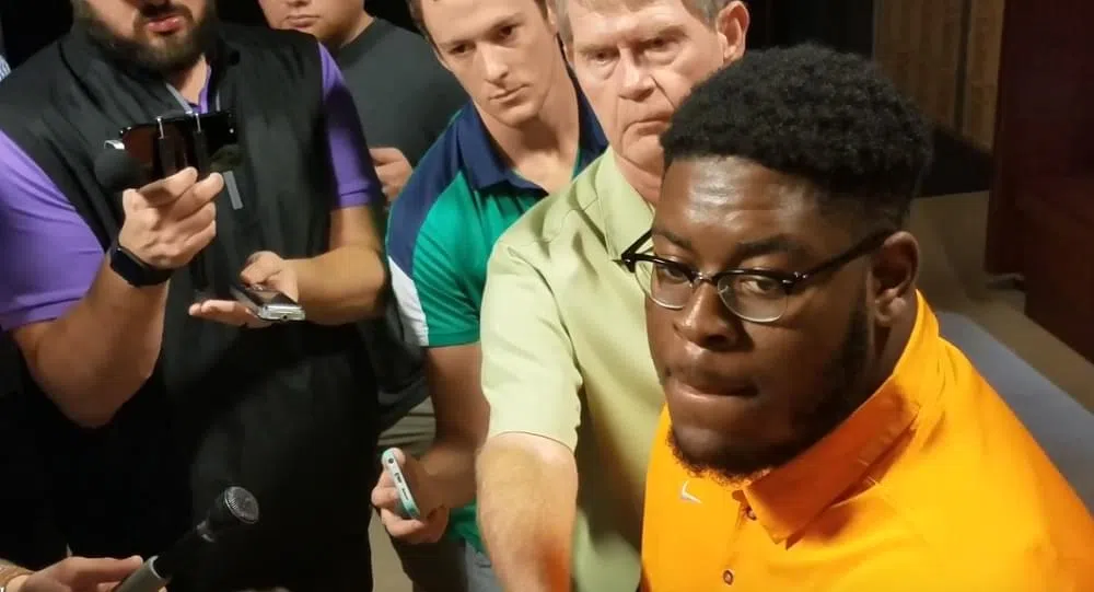 Tennessee offensive lineman Trey Smith spoke with the media Monday in a group setting starting ETSU week. https://youtu.be/hoJvF7JQg14 Vols OL Trey Smith / Credit” WNML Staff