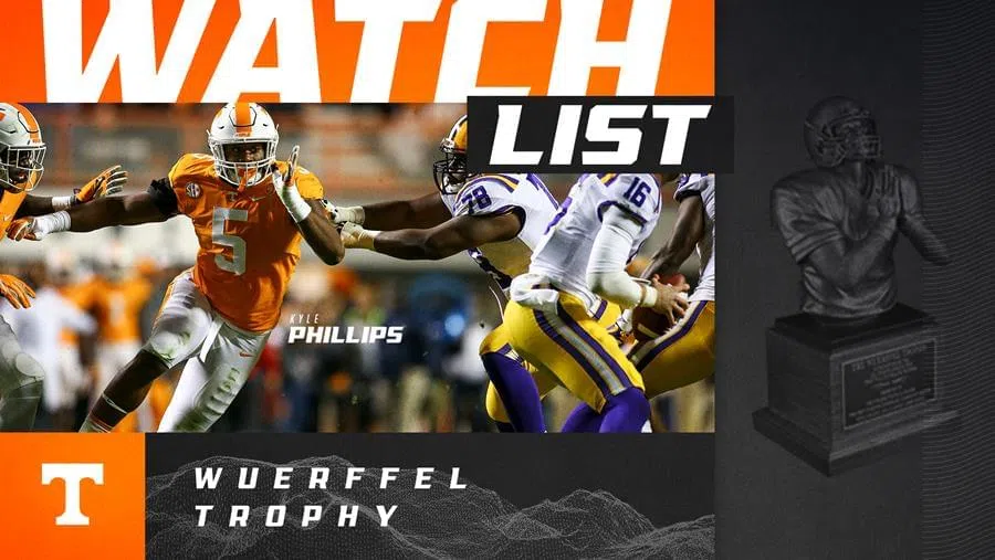 Credit: UT Athletics FORT WALTON BEACH, Fla. - Tennessee senior defensive end Kyle Phillips has been named to 2018 Wuerffel Trophy Watch List. The award honors college football's top community servant...