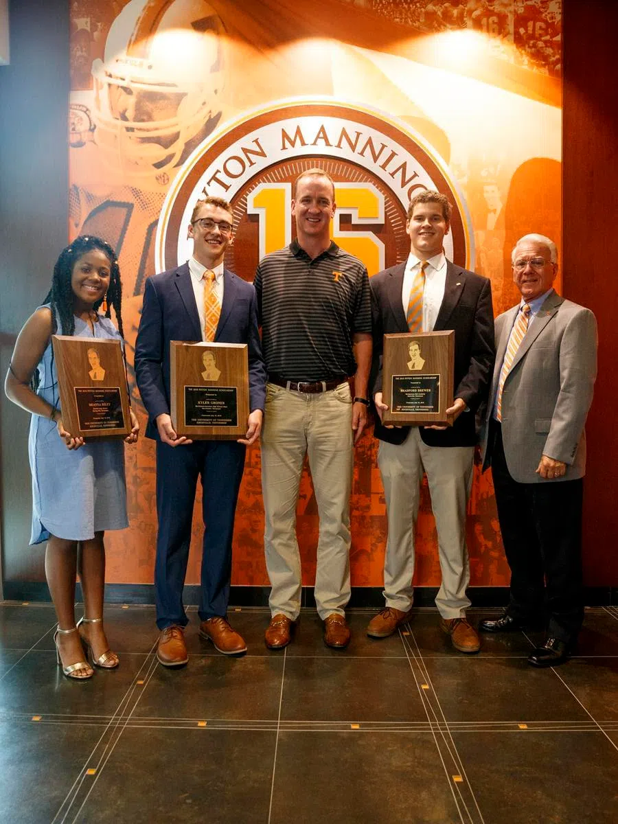 Peyton Manning & Scholarship Award Winners / Credit: UT AthleticsKNOXVILLE, Tenn. — An exclusive club of current and past Tennessee students welcomed new members on Tuesday as four incoming ...