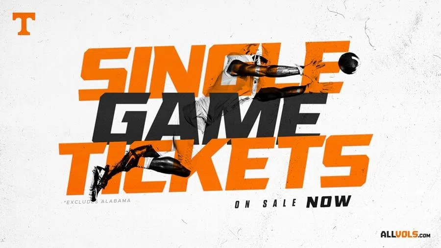 Credit: UT AthleticsKNOXVILLE, Tenn. - Tennessee football single game tickets are on sale now for six of the seven home games at AllVols.com or by calling 1-800-332-VOLS.Vol fans can purchase single t...