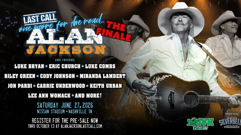 Alan Jackson is coming to Nissan Stadium in Nashville in 2026 for his Last Call: One More For the Road FINALE show! With performances by Luke Bryan, E...