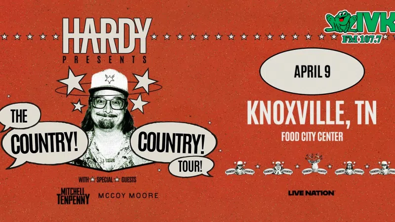 Hardy is coming to Knoxville in 2026! You can see him at Thompson-Boling Arena at Food City Center on April 9th! Joined by Mitchell Tenpenny and McCoy...